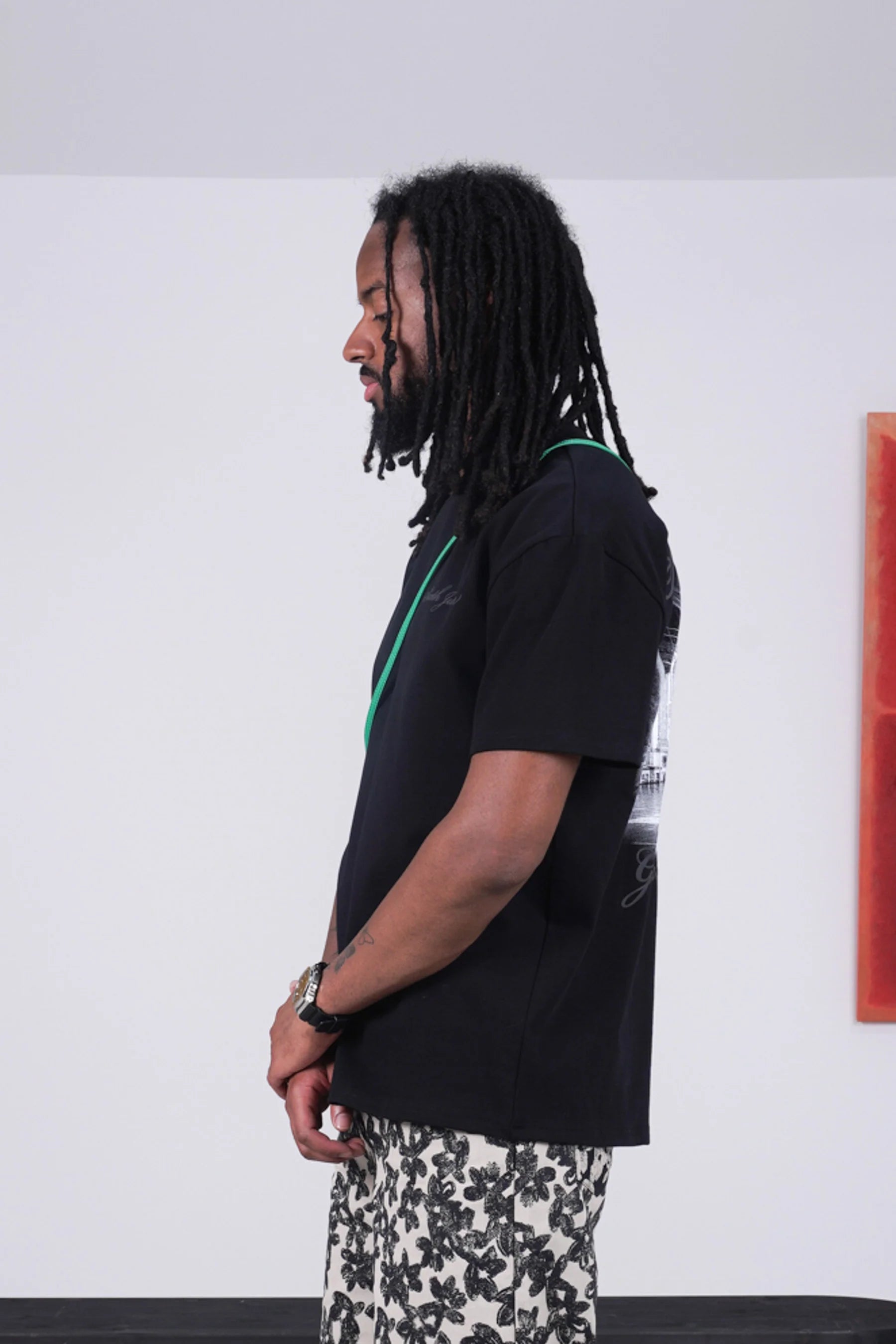 Le mannequin mesure 188 cm et porte une taille L.Un t-shirt fort en caractère, parfait pour compléter un look urbain, moderne et affirmé.